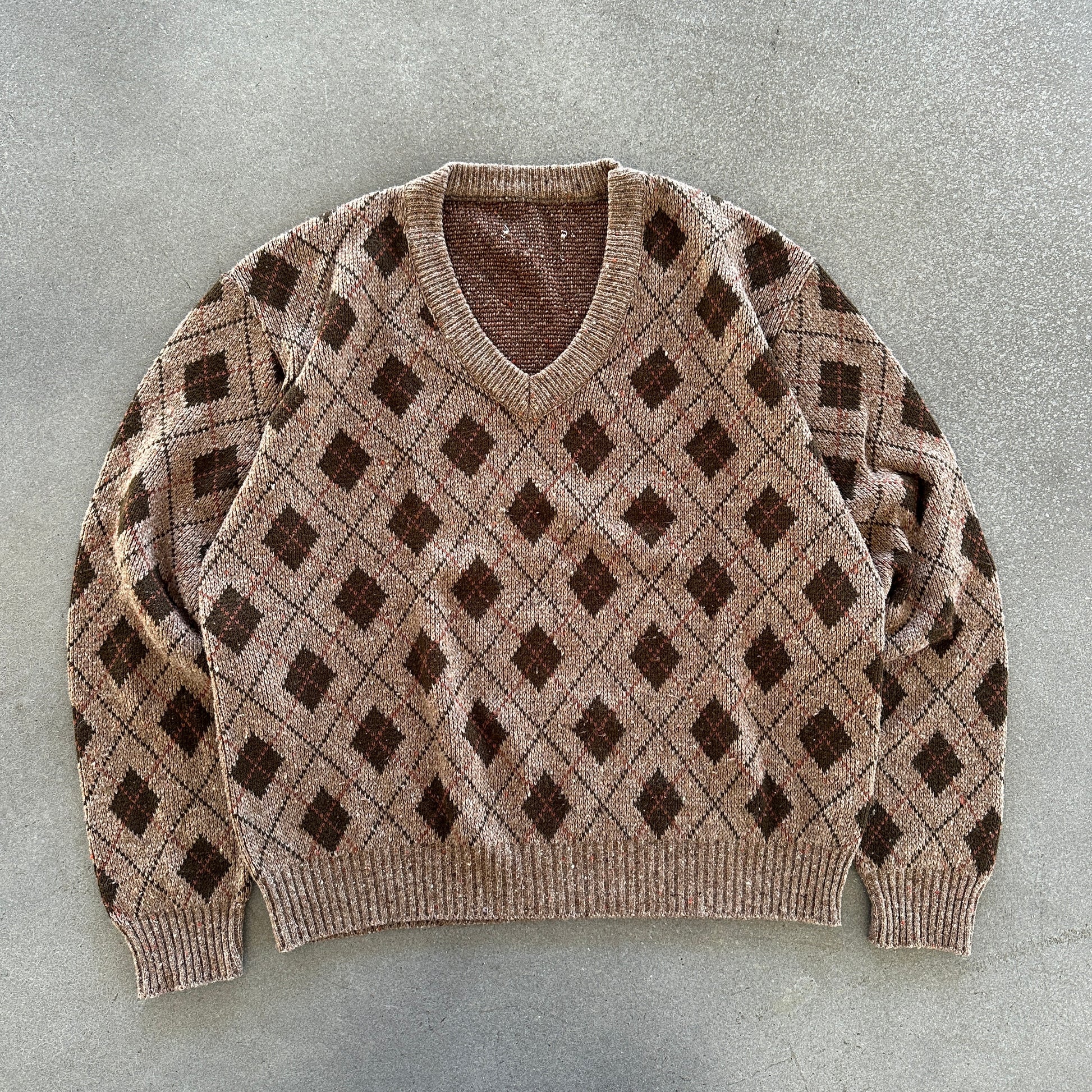 Argyle V Neck Sweater Geometric 90's - XL