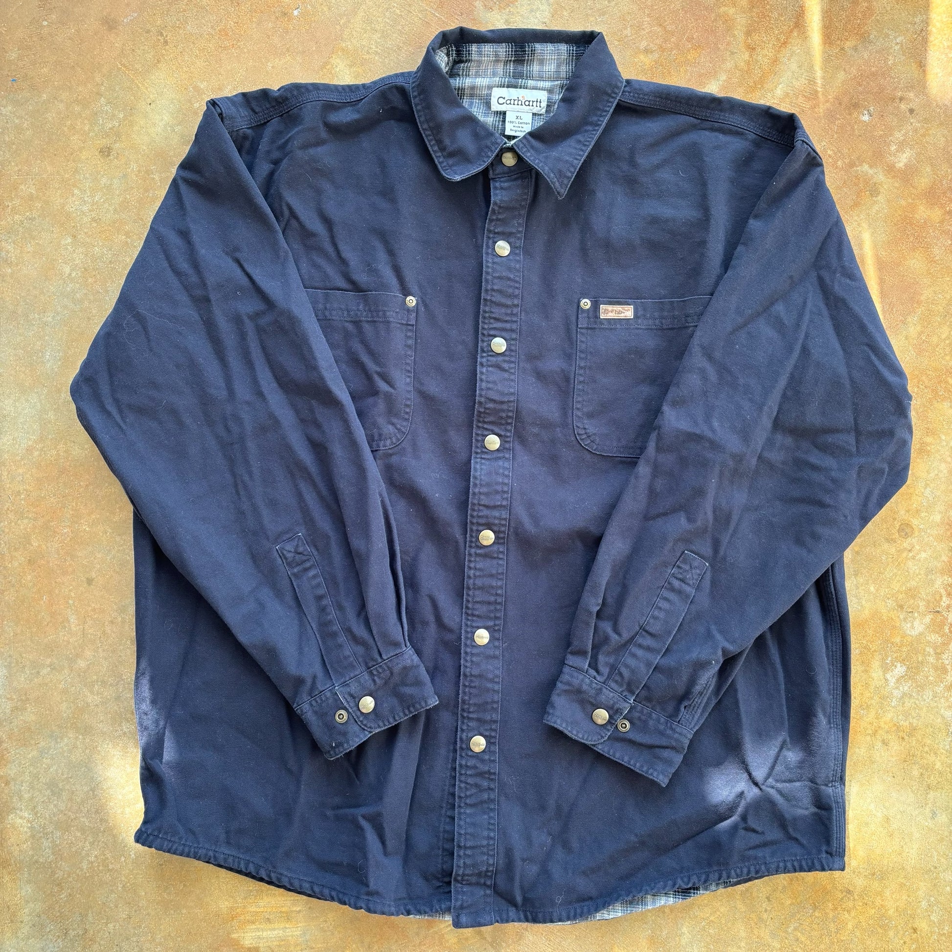 Carhartt Blanket Plaid Lined Canvas Snap Button Workwear Chore Jacket 00's - XL