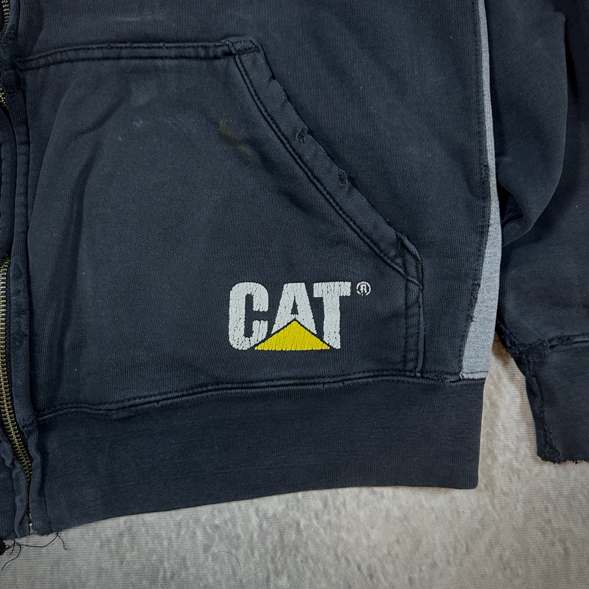 Caterpillar CAT Hooded Full Zip Jacket Distressed Workwear 00's - L