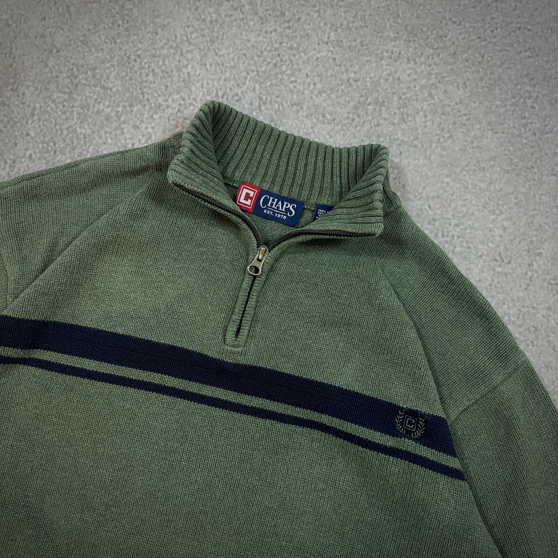 Chaps Knit 1/4 Zip Sweater Pullover Stripe Surf Skate 00's - XL