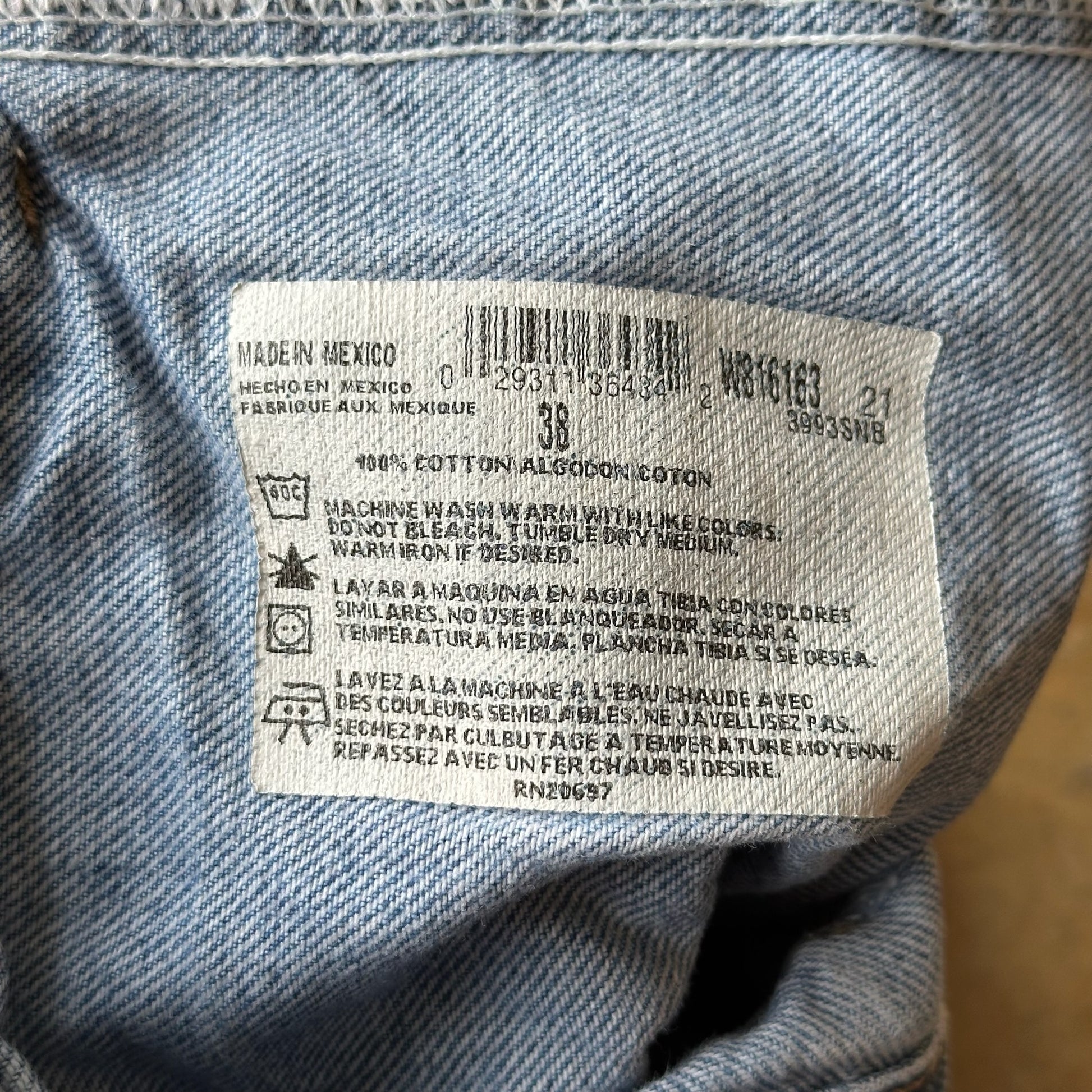 Note: Small hole on back pocket, some distressing.