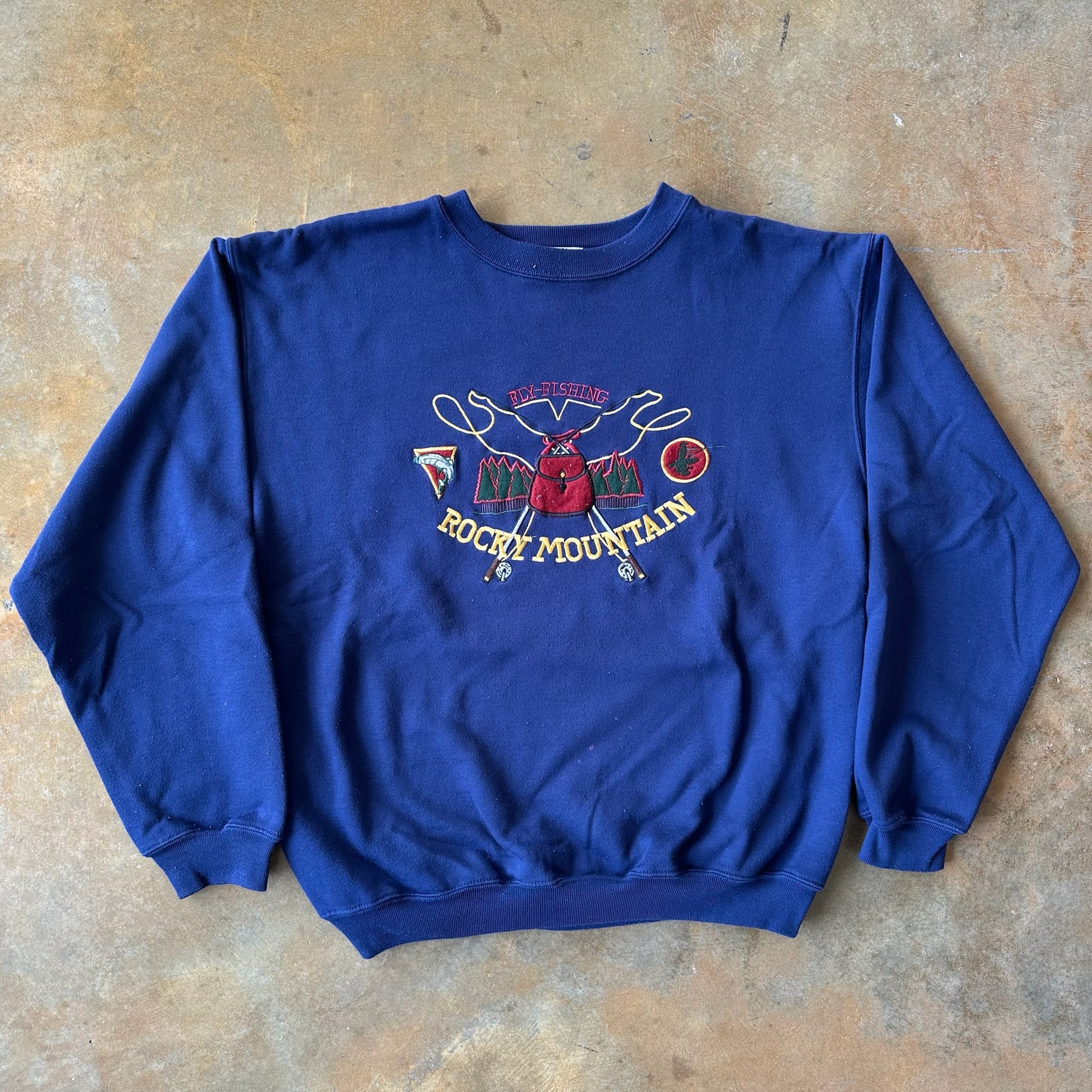Fly Fishing Rocky Mountains Embroidered Crewneck 90's - M
