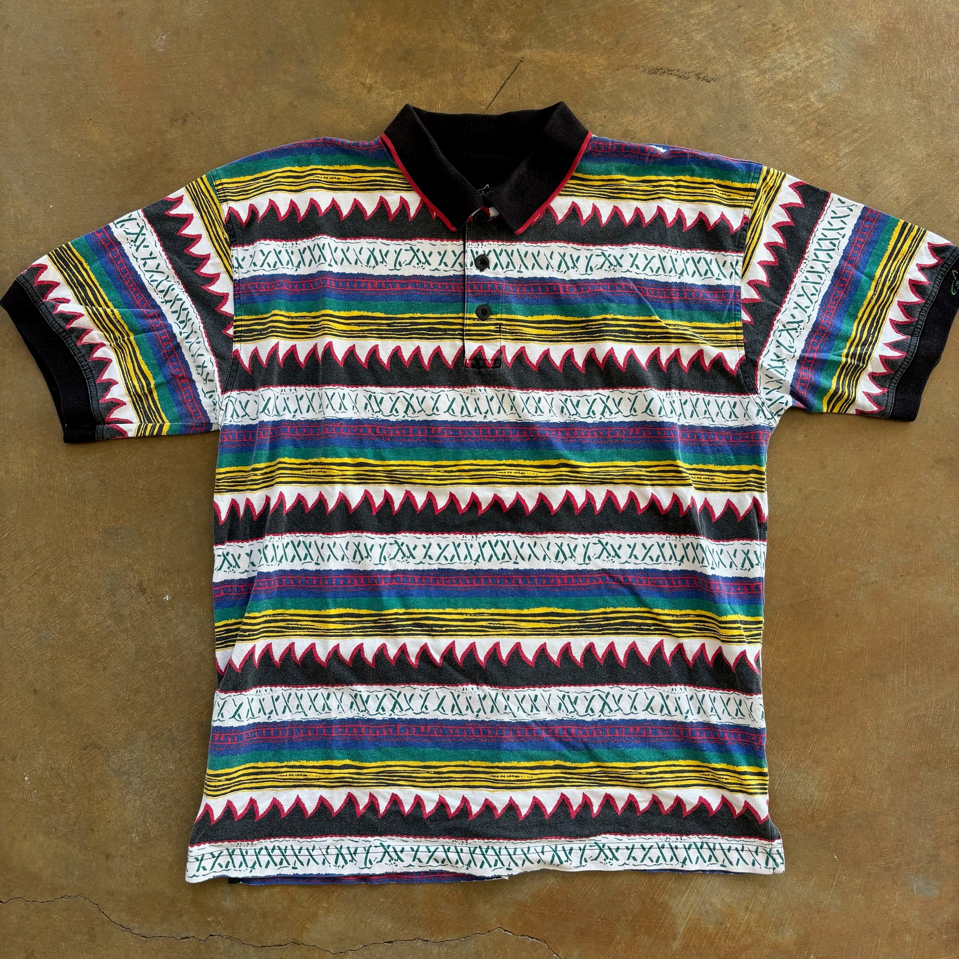 Greg Norman Aztec Abstract Colorful Polo Shirt 90's - XL