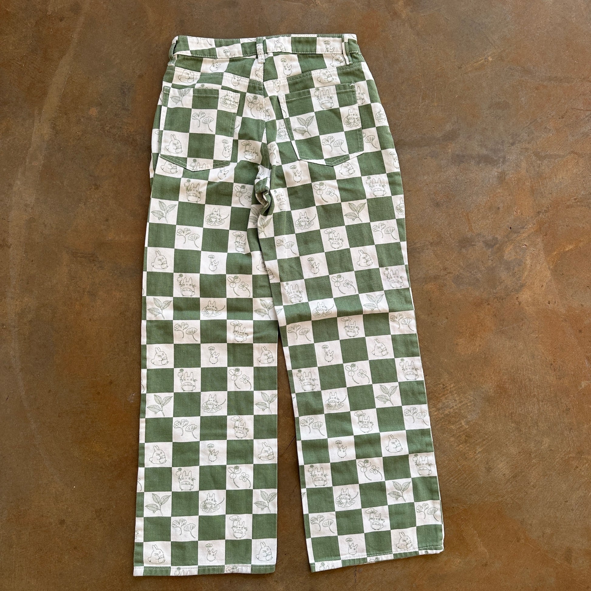 My Neighbor Totoro Studio Ghibil Anime Checkered Green Wide Leg Jeans - 7