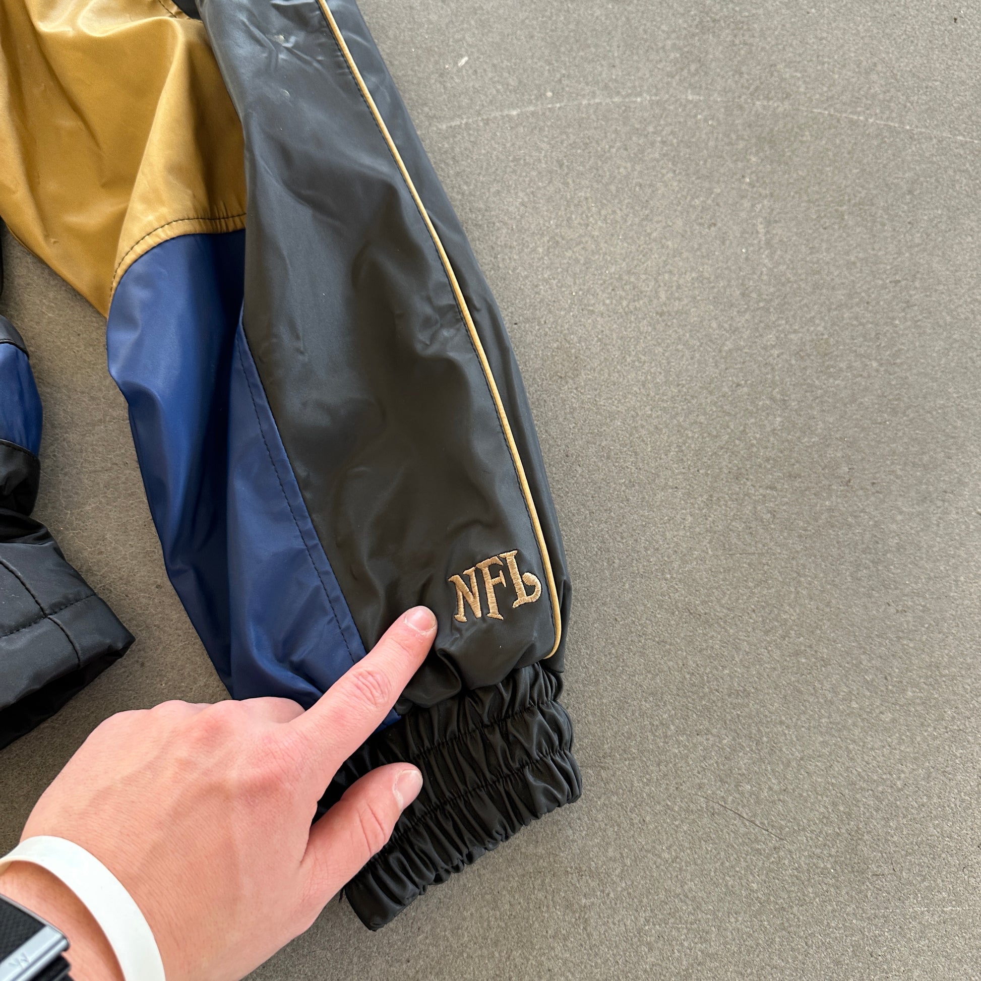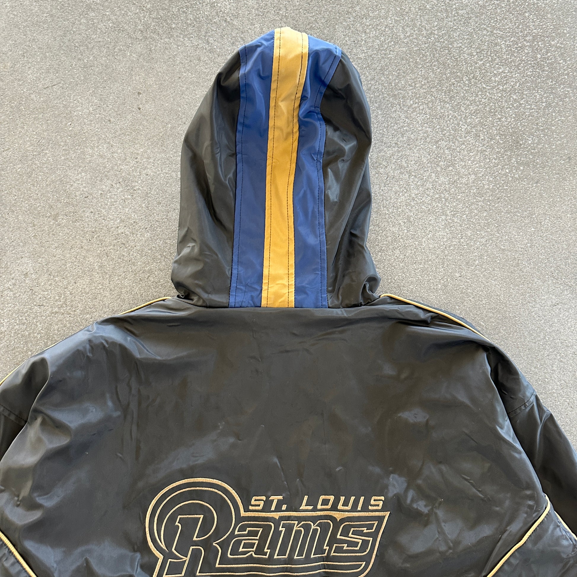 St. Louis Rams NFL Faux Leather Sherpa Lined Full Zip Jacket 00's - 2XL